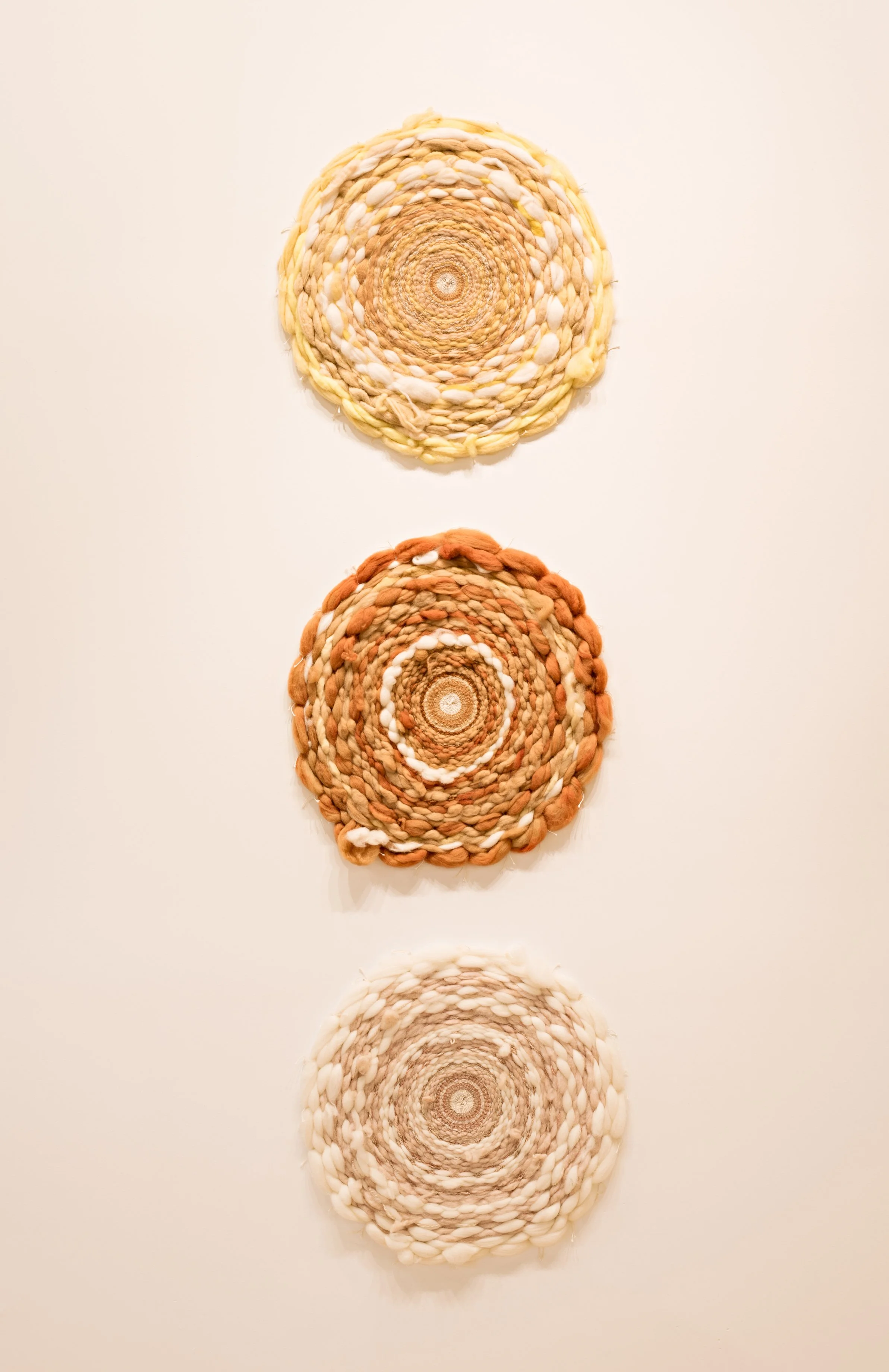 2. Siri Hayes, Melbourne Rudolf Steiner School Colour Spectrum, 2015, botanically dyed woollen tops, 1 x 1.2m and 3 x 60cm diameter circular weavings